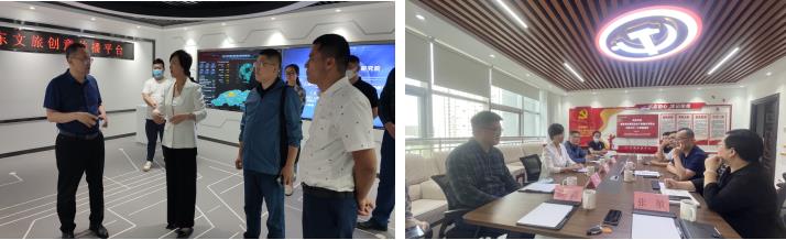 山东文旅传媒集团党委书记、董事长庞道锋陪同调研,介绍了山东文旅传媒集团发展历程以及各精品业务板块所取得的优秀成果,并主持此次调研座谈。