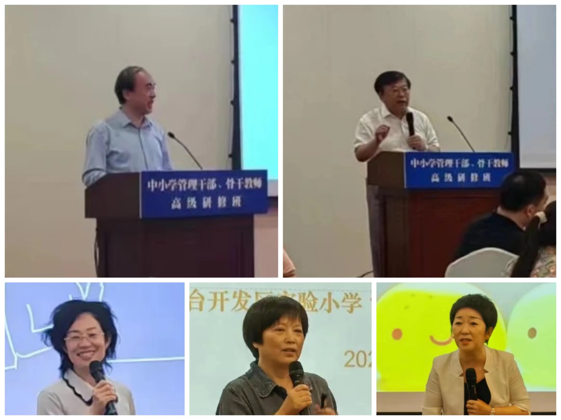 研修班邀请了中国教育学会副秘书长、首都师范大学特聘教授高书国,中国教育学会秘书处研究员、原学术室主任、北京师范大学兼职教授时俊卿,教育部新时代名师名校长培养人、正高级教师、齐鲁名校长、诸城市府前街小学校长王洪珍,鲁东大学硕士生导师、正高级教师、齐鲁名校长、烟台经济技术开发区实验小学教育集团理事长宫海燕,国家二级心理咨询师、高级家庭教育指导师、美国正面管教协会认证学校讲师张丽,为研修班分别做了《中国式教育现代化典型特征——推进家庭学校社会协同育人》《新时代教学方式变革与运用的理论与实践》《学科核心素养统领下理解力教学模型的建构与应用》《提升领导境界 练就管理功夫——学校管理实务研修专题》《做新时代智慧型教师》精彩报告。