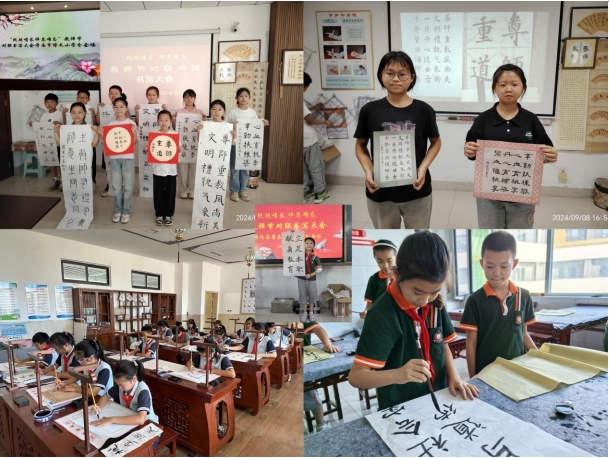师生们认真筹备,积极组织,在这个特殊的日子开展了软笔书法的现场写作及作品展演活动。