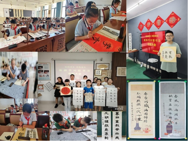 对联要求对仗工整、意义明确、寓意深远。通过学习、创作和书写对联,引导学生了解一些常见的文化典故和成语,认识对仗的概念、对联的基本结构和平仄、押韵要素等。对联对学生们的意义不仅限于语言艺术的培养,更重要的是通过这一传统文化的形式,促进孩子全面发展,提高他们的语言表达、创造力和思维逻辑能力,同时加深对传统文化的理解和认知。