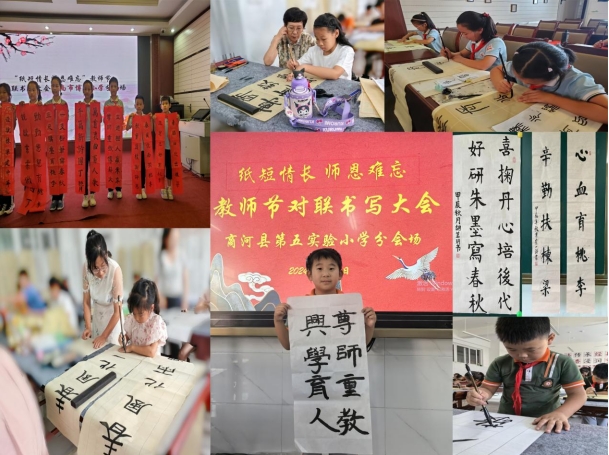 值此第40个教师节来临之际,为深入贯彻党的二十大精神,广泛弘扬中华优秀传统文化,加强学校精神文明建设,进一步推动尊师重教良好风尚的形成。2024年9月9日至9月10日,“纸短情长 师恩难忘”教师节对联书写大会活动在各参与学校顺利举行,营造了浓厚的书写和颂恩氛围。