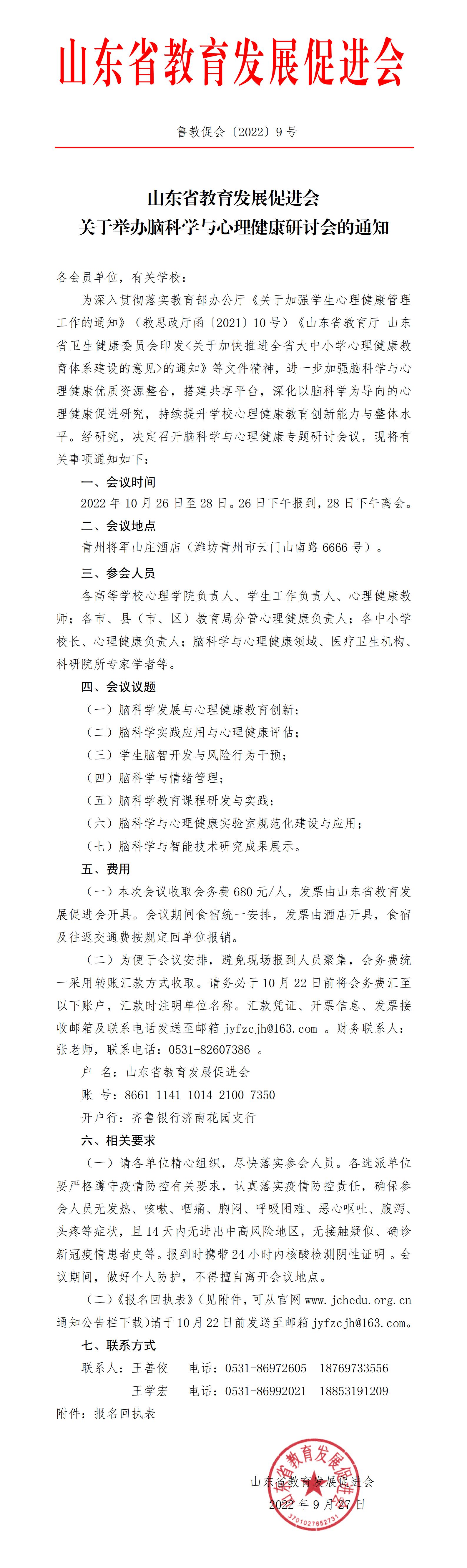 山东省教育发展促进会关于举办脑科学与心理健康研讨会的通知