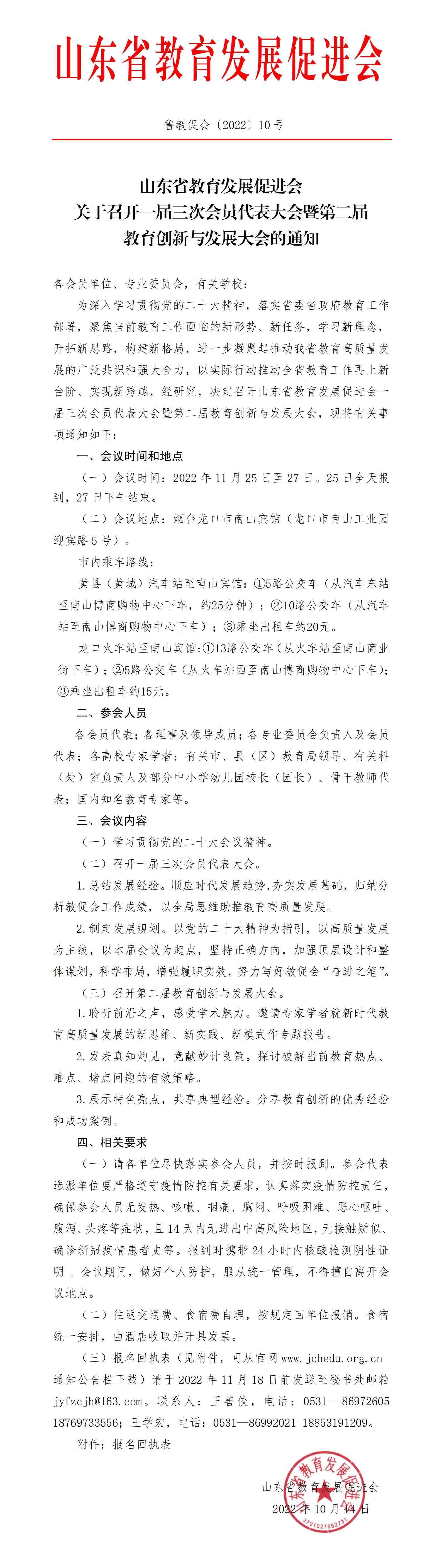 山东省教育发展促进会召开一届三次会员代表大会暨第二届教育创新与发展大会的通知