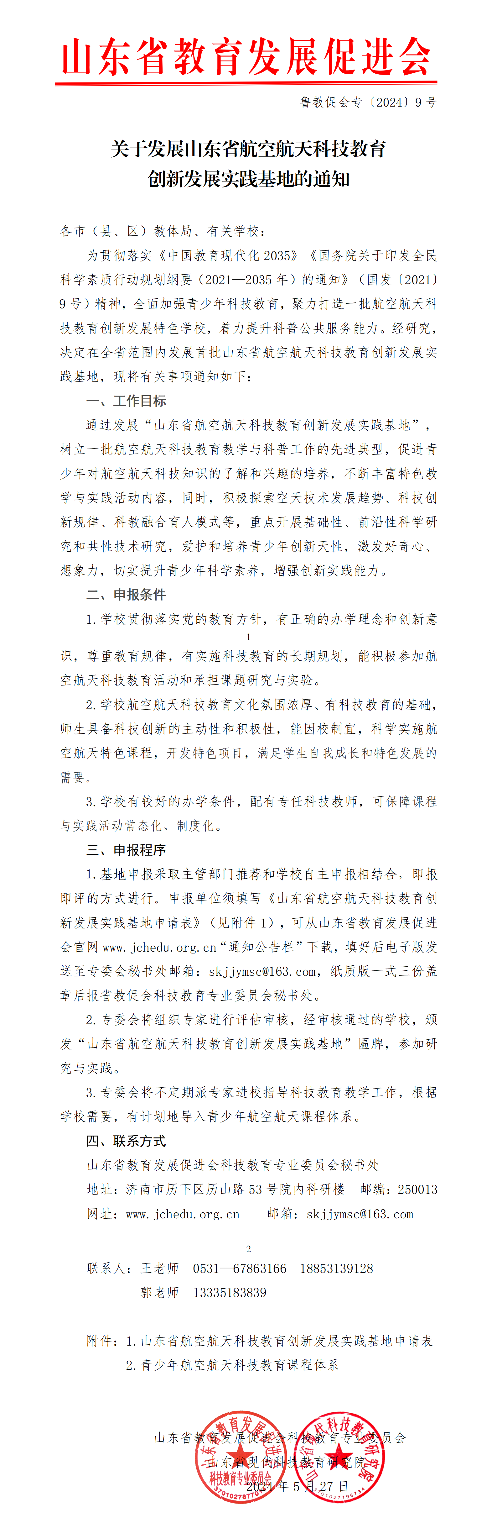 附件:1.山东省航空航天科技教育创新发展实践基地申请表.doc